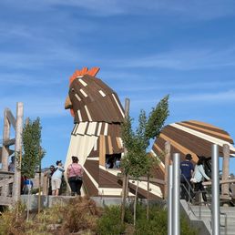 She's finally open! We've been eagerly waiting for the playground expansion and couldn't wait for the day we'd get to run around and play inside a giant chicken. Yes-that's right, a GIANT CHICKEN! We were thrilled to discover that the playground expansion was ready just in time for summer! The new structure is fantastic, and the kids had a blast climbing, exploring, and discovering all the fun features. The highlight for us was the climbing net--scaling up to the very top of the tallest part of the playground felt like a mini adventure! The design is creative, unique, and thoughtfully planned, making it a perfect spot for kids to burn off energy while having a great time. Emma Prusch Park has really outdone itself with this addition, and it's sure to become a family favorite for playdates and outings. If you haven't checked it out yet, put it on your list--you won't be disappointed! Bravo, Emma Prusch!