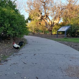 Emma Prusch is my son's favorite park! I highly recommend Emma Prusch because it is very family-friendly and entertaining for the kids. The best part? It's free! No parking fee. Because of the big chicken slide in the center of the play area, my son calls it the "chicken park". I know it is technically a rooster, but the word "chicken" stuck. They have lots of signage saying the tunnel slide attached to the chicken is temporarily closed, but I still saw quite a few kids going down it. It's so huge that you can see the structure from the highway connecting ramp between 101-N and 680-N. Fair warning, all the slides are all made of metal, so they can get hot pretty quickly on a sunny day. There are plenty of swings for the kids to enjoy, ropes and hills to climb, and nice squishy cushioned flooring. The park has plenty of tree shade and benches along the side of the playground area. They also have picnic tables that you can reserve for birthday parties or gatherings. I should also mention they have public restrooms (a must-have with little kids). The barn animals and farm area is gated off and can be easily accessed by families with strollers. It can get pretty dusty inside from the dirt being kicked up by everyone walking around. I would recommend close-toed shoes inside this area, since it houses live animals and there can be fecal matter lying around. Inside the barn area, you can observe rabbits, pigs, peacocks, chickens, turkeys, and goats. Off to the side of the main entrance, there is a flower and vegetable garden that has some small garden toys for kids to play with. They also have a fruit tree botanical garden you can peruse. The surrounding trail that encircles the whole park is a great scenic walk. I love the little gazebo on the far end of the trail. It gives me a little bit of wedding ceremony vibes. Overall, Emma Prusch Farm Park has so much to offer. It really immerses you in the farm and nature aspects of life.